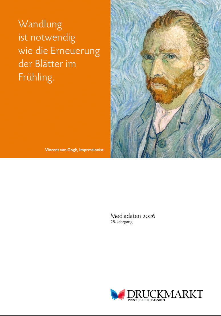 Druckmarkt und die Schwesterzeitschrift Druckmarkt Schweiz sind unabhängige Magazine für die grafische Industrie und Magazine für Unternehmer, Führungskräfte, Investitionsverantwortliche und Entscheider in der Printmedienbranche. Themen, Darstellungen, Artikel und Beiträge sind speziell auf die Informationsbedürfnise der Zielgruppe abgestimmt. Ausgewählte News zeigen Trends auf und die kompakte Berichterstattung sind eine verlässliche Billanz der Branche. |
